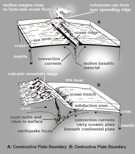 earth's crust into the mantle beneath another plate.