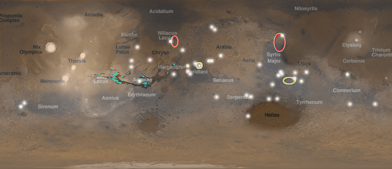 minerals from the Phyllocian era are; Arabia Terra, Terra Meridiani